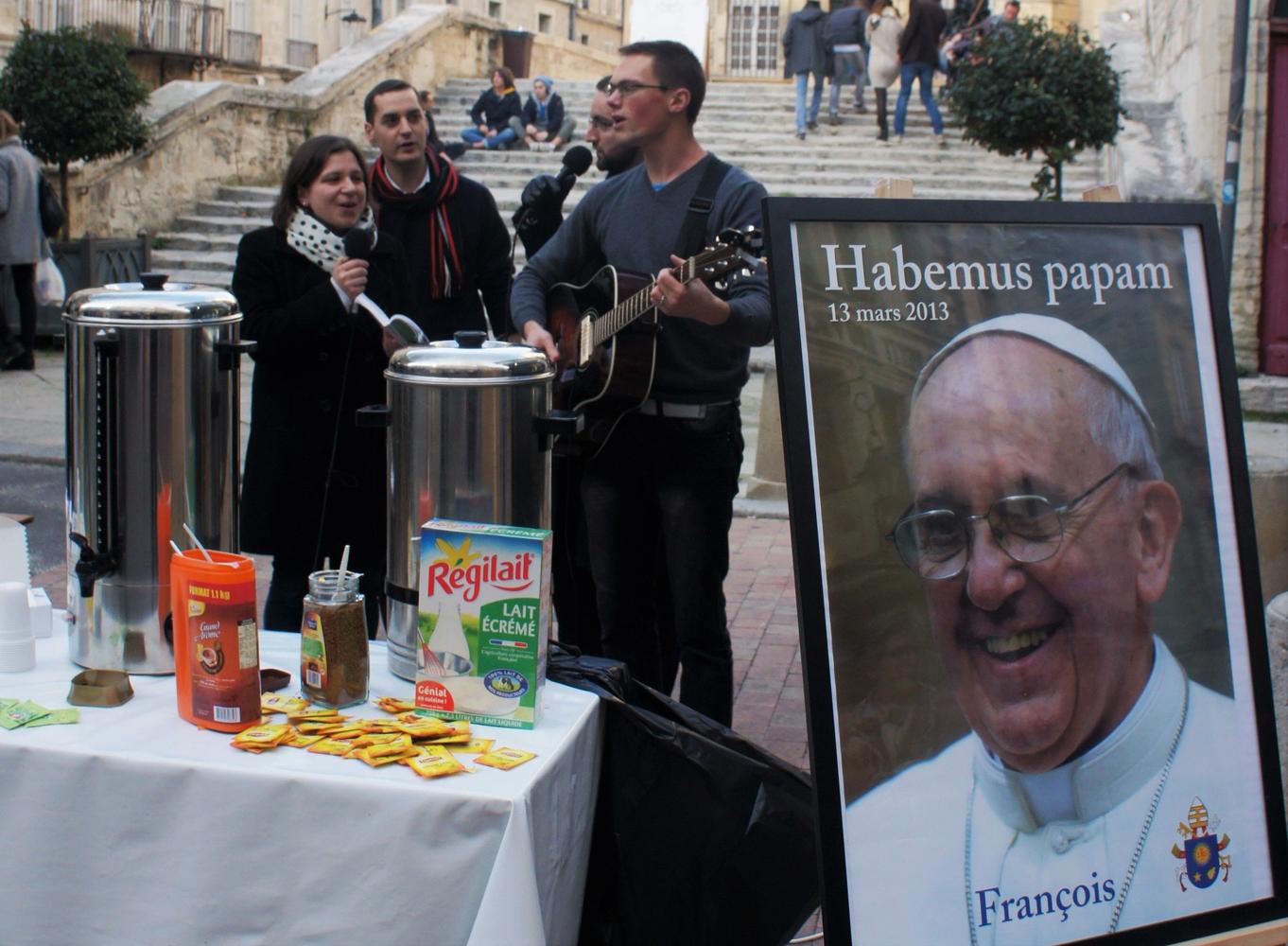 Cet après-midi-là, les rues d'Avignon n'ont pas retenti uniquement au bruit des annonces publicitaires et autres sollicitations commerciales. Le samedi 12 décembre de 14h00 à 18h00, sur la paroisse Saint Agricol, s'est déroulé un après-midi de prière et d'évangélisation de rue organisé et animé par les étudiants et les professeurs du Studium de Notre Dame de Vie.